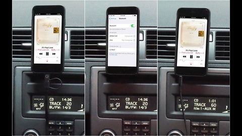 Select the "Aux" mode on the dashboard to play iPhone audio on your car speakers.