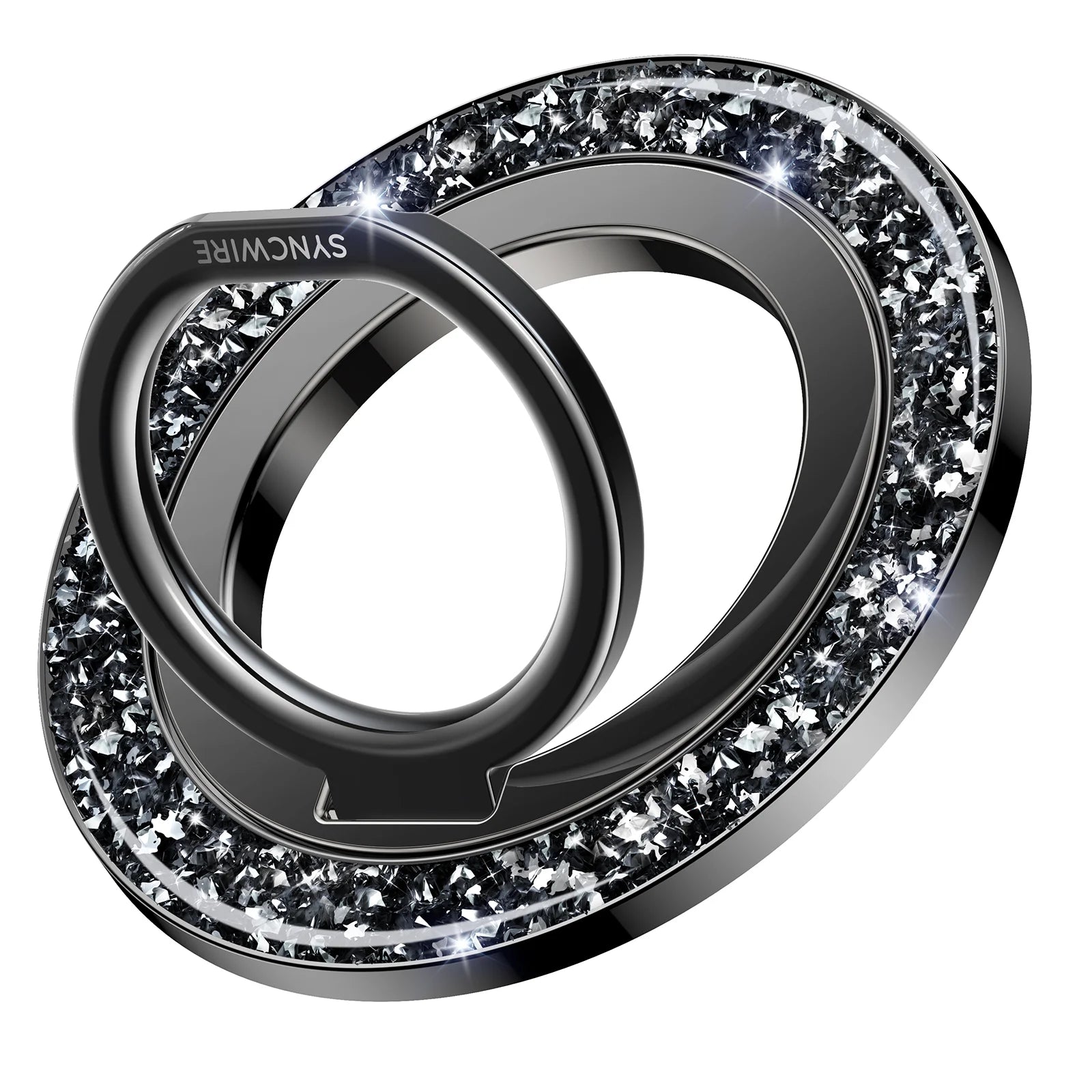 - Super Strong Magnetic: The Syncwire Glitter Magnetic phone ring holder is made with N55 NdFeB magnets, providing exceptional magnetic force. You can securely attach your phone to the MagSafe magnetic phone ring holder with just one finger, experiencing a strong hold that resists shaking or movement. The magnetic force can be enhanced by 5 times when used with the provided metal ring.