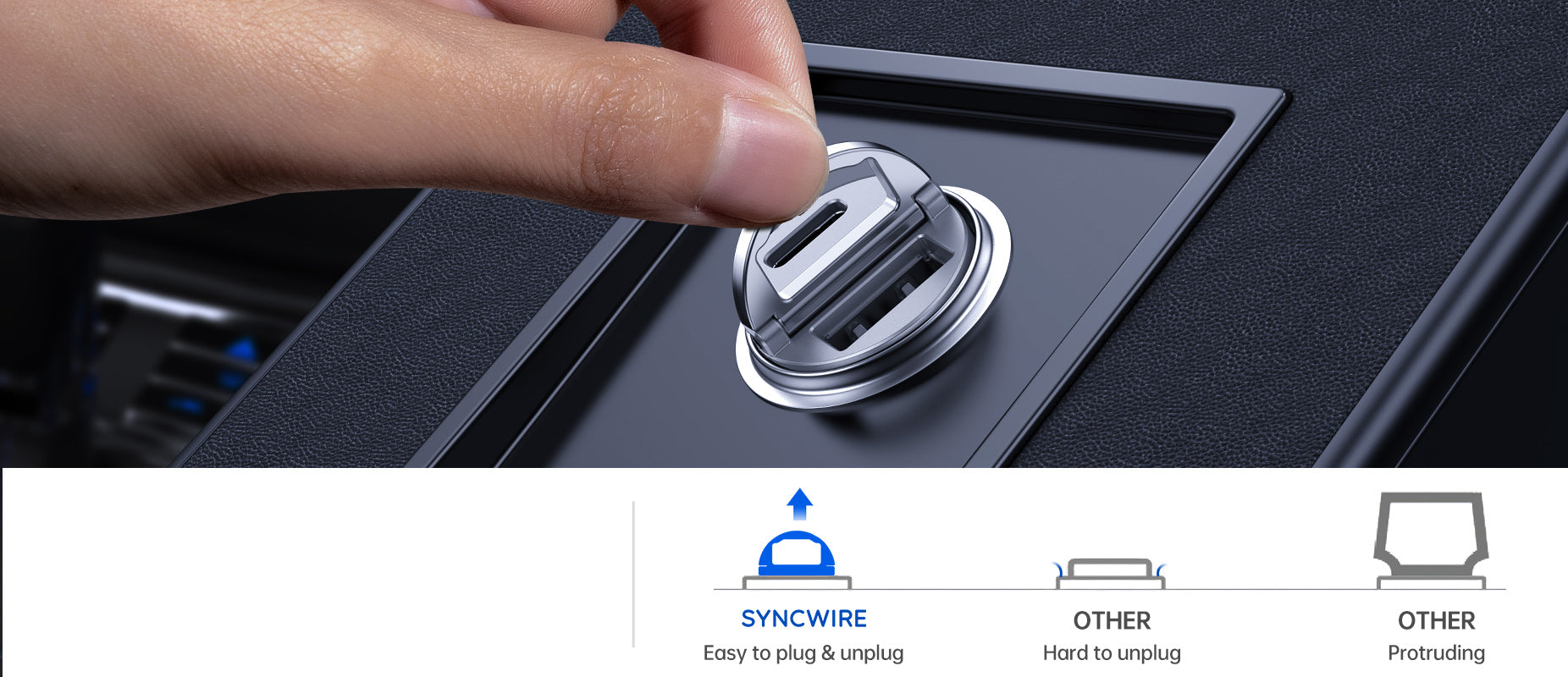 - Unique Pull Ring & Smaller Size Than Ever.Tiny car charger, not much bigger than your thumb, with massive power. USB-C fast charging blends perfectly with most car cigarette lighters. Features a pop-up pull ring for easy removal.