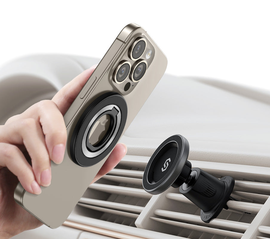 - Double-Sided Magnetic: Features a unique two-sided magnetic design, compatible with MagSafe car mounts without removing the ring. It attaches to any magnetic metal surface, like fitness equipment or fridges. It can hold up to 3 lbs on the phone side, and 10 lbs with the metal ring. The back can support up to 2.2 lbs. (Tested by Syncwire Labs)