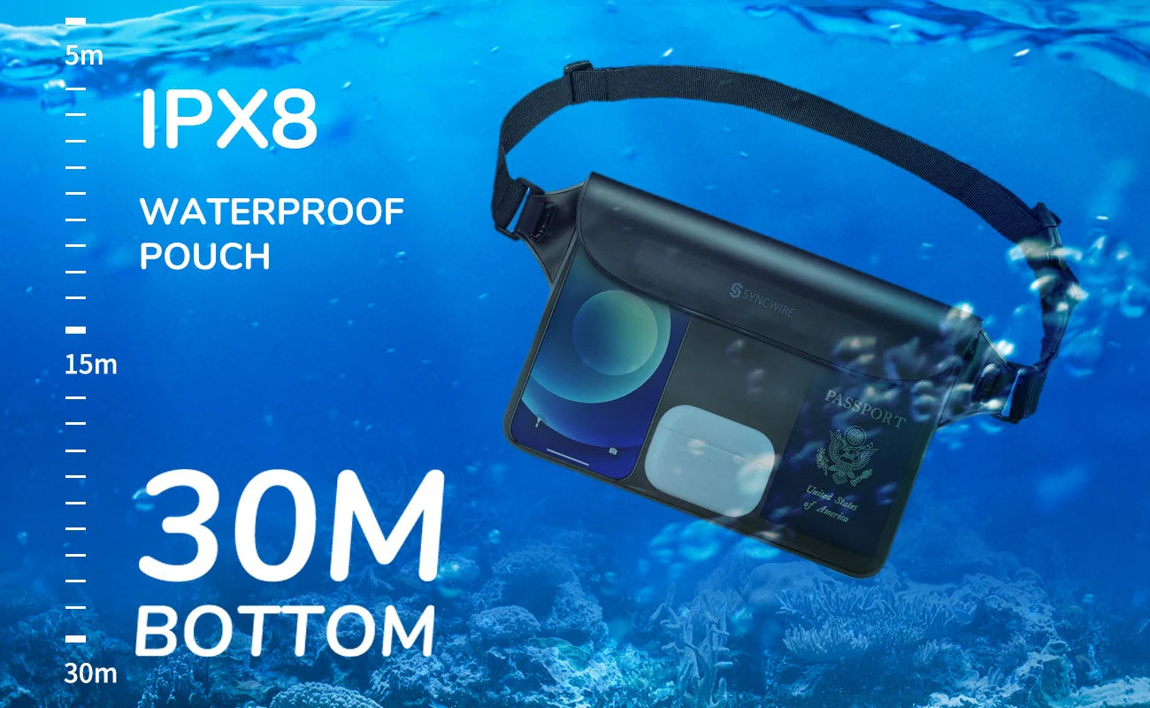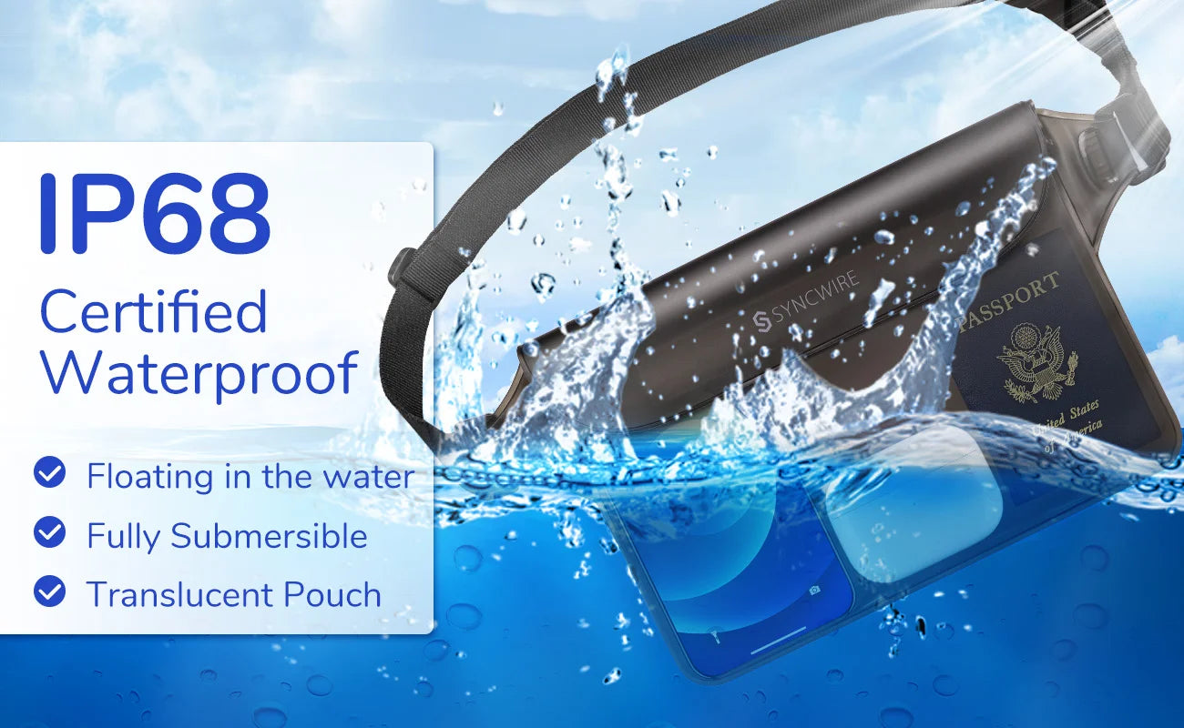 - What You Get: 1 Black Syncwire Waterproof Waist Bag and 1 White Syncwire Waterproof Waist Bag. They will accompany you through a pleasant beach trip.